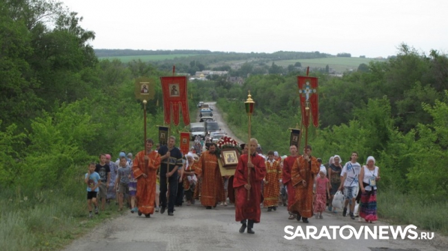 Возглавил богослужение и крестный ход помощник благочинного Воскресенского округа протоиерей Павел Усов. В крестном ходе приняли участие священнослужители Саратовской епархии, прихожане из Саратова, Вольска, Шихан, Энгельса, Балашова - всего более 300 человек.