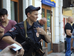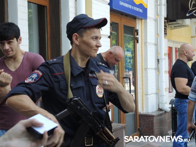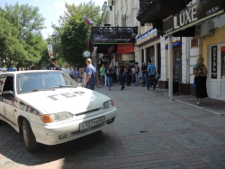 Сейчас на месте ожидают прибытия судебного пристава. Также на месте присутствуют полицейские, в том числе - вооруженные автоматами. Они следят, чтобы участники конфликта не нарушали закон. Действительно, пока участники не позволяют себе нецензурной брани и не идут впрямую в рукопашную.