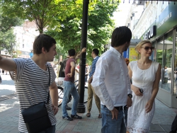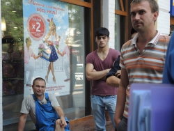 Представитель пытался провести с собой замерщиков, которые должны были подготовить площади к сносу сообразно решению суда. В пятницу юриста не пропустили внутрь (вход на Дзержинского возможен только с проспекта), сотрудники решили не пропускать замерщиков и загородили вход. Теперь вместе с юристом в здание не пропускают группу молодых людей, представившихся сотрудниками строительной фирмы. Сотрудницы ТК встали в дверях и стали требовать, чтобы законный представитель истца "убрал своих дагестанцев". "Почему вы их оскорбляете?" - спросил юрист. "дагестанец - это не оскорбление", - парировали его оппоненты. "Зачем подчеркиваете их национальность? Они такие же граждане России!" - отвечал представитель истца.