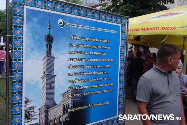 В праздновании окончания священного для мусульман месяца Рамадан приняли участие более девяти тысяч жителей области. Праздник включал угощение и концертную программу, а также мастер-классы саратовских спортсменов: чемпиона СНГ, Европы, Азии, Евразии и мира по кикбоксингу и восточному многоборью, рекордсмена книги Гиннесса Саида Детхаджиева и чемпиона мира по кикбоксингу Даци Дациева и трехкратного чемпиона России по боксу Артема Чеботарева.