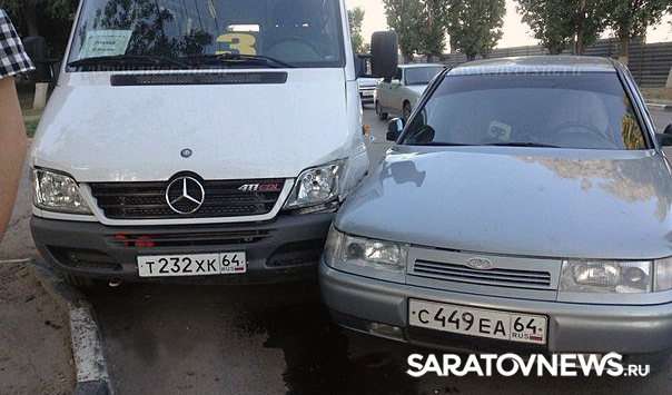 "Двенадцатая" пыталась заехать с автомагистрали во двор, но не вписалась в поворот и врезалась в маршрутный микроавтобус "Мерседес" с пассажирами, ехавший в сторону Заводского района (маршрут №3, ул. Радищева - Комсомольский поселок).
