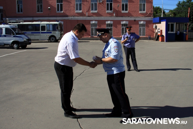 Сегодня, 3 августа, во время развода личного состава городской полиции на службу ценные награды получили из рук начальника управления подполковника полиции Ильи Молчанова за поимку грабителя, сообщает пресс-служба ГУ МВД по Саратовской области.