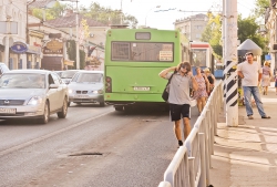 Большие же автобусы и троллейбусы все так же собираются в очередь на ул. Московской по направлению к вокзалу, и многие из водителей продолжают высаживать пассажиров, не доехав до остановки, в результате чего те обходят ограждение по проезжей части. Пассажирам же более дисциплинированных шоферов приходится по 5-7 минут ожидать в душном транспорте, пока откроются двери.