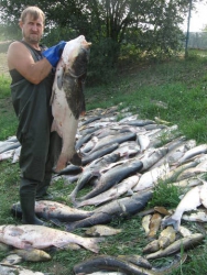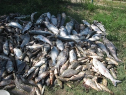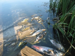 Известно, что ущерб на сегодняшний день составляет свыше 6 тонн толстолобика, карпа и сома. Дохлую рыбу собирают и вывозят прочь; предполагается, что загрязнение пруда, вызвавшее смерть его обитателей, вызвано порывом канализации.