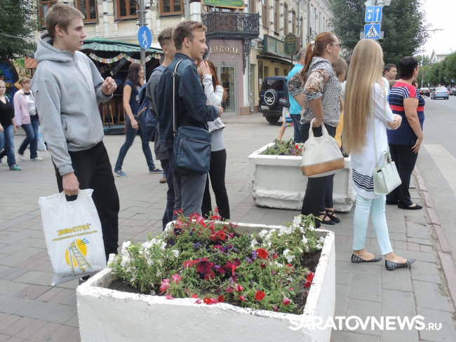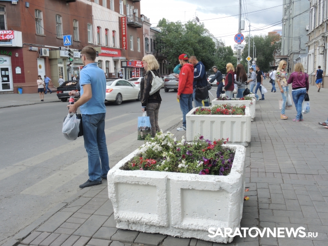На проспекте Кирова установили вазоны с цветами, которые призваны бороться с лихачами на машинах, колесящими по главной пешеходной зоне Саратова. Первые вазоны появились весной, их поставили на пересечении проспекта Кирова с улицей Радищева. Затем клумбы поставили и на пересечении с улице Вольской, а на днях еще несколько появилось на перекрестке с Горького.