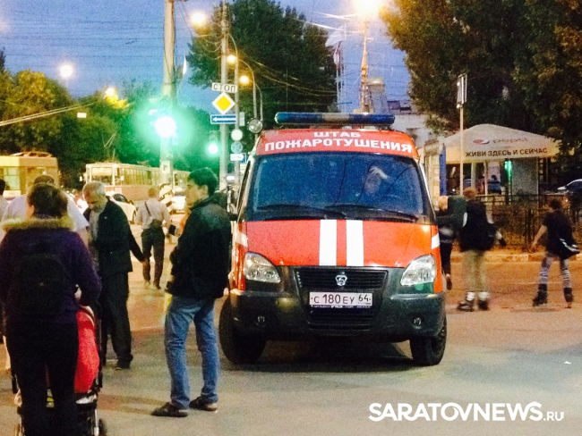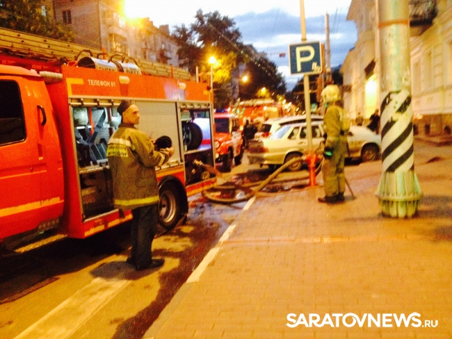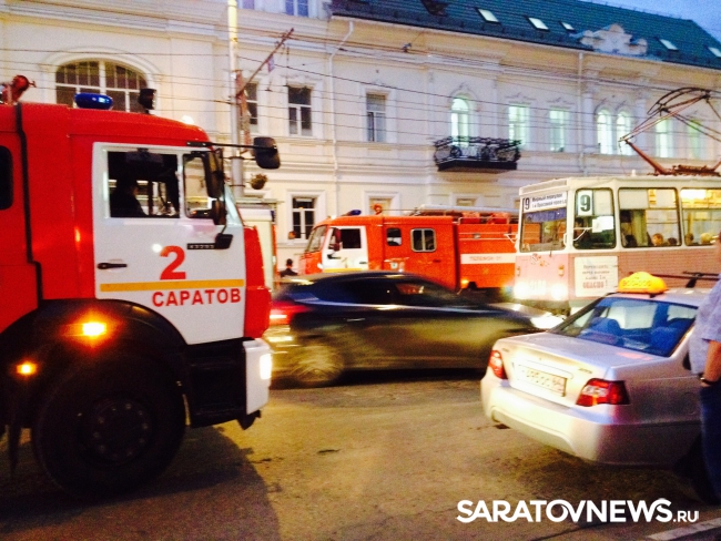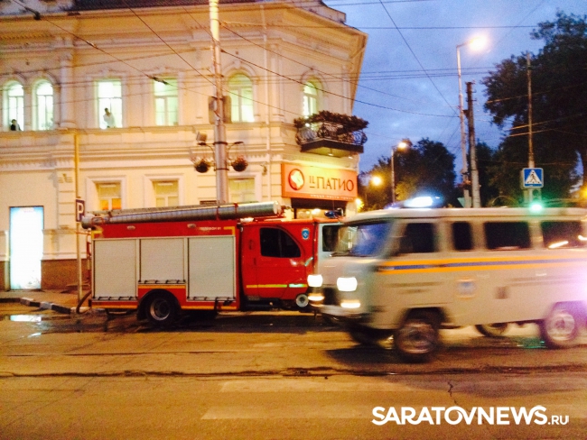 Сегодня вечером в центре Саратова произошло ЧП: по пожарной тревоге к галерее "Каштан" съехалось несколько единиц пожарной техники, а также автомобили других экстренных служб, в том числе - "скорой помощи". Огнеборцы развернули шланги и приготовились тушить огонь. Во дворе галереи припарковалась пожарная автолестница, на перекрестке стал передвижной штаб пожаротушения. На улице рядом с рестораном ощущался легкий запах гари, но дыма и огня видно не было.