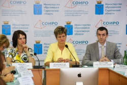 17 августа 2015 г. на базе СОИРО в режиме видеоконференции были подведены итоги работы переговорных площадок. В работе видеоконференции приняла участие Наталья Обрежа, заместитель министра образования Саратовской области — начальник управления общего и дополнительного образования. Вела совещание ректор ГАУ ДПО "СОИРО" Ирина Ильковская.