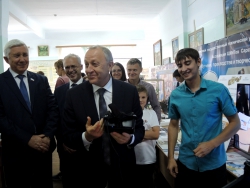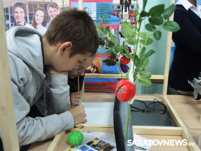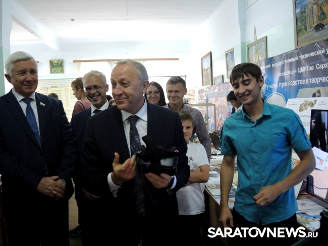 Губернатор Валерий Радаев ознакомился с новой разработкой аспирантов и студентов СГТУ на выставке в лицее номер 13, перед расширенным пленарным заседанием работников образования.