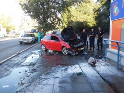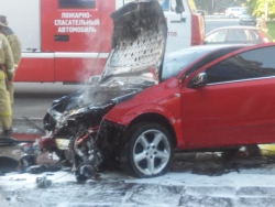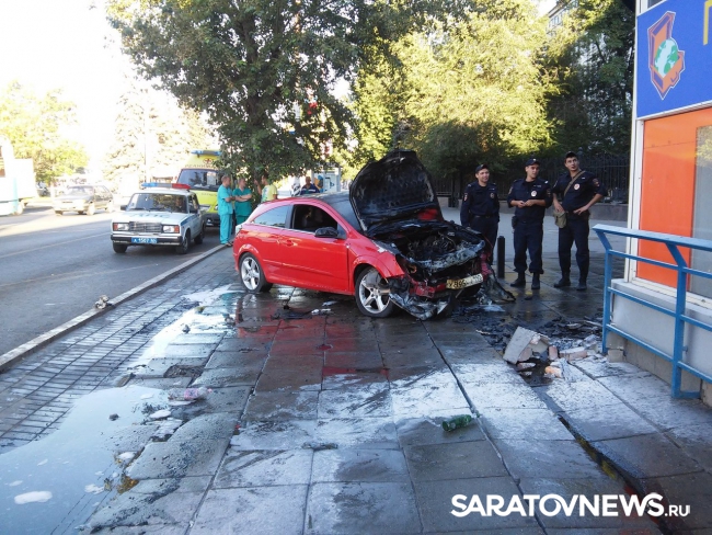 После столкновения с препятствием машина загорелась. На видеозаписи, сделанной на месте ЧП видно, что автомобиль пытаются потушить, но к успеху это не приводит.В итоге с пламенем приходится бороться профессионалам - на место приезжают пожарные.