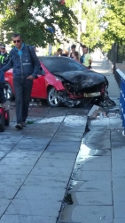 Сегодня, 22 августа, около 6:00 на пересечении улиц Московская и Радищева в ограждение на тротуаре врезалась иномарка, сообщают очевидцы произошедшего в социальных сетях.