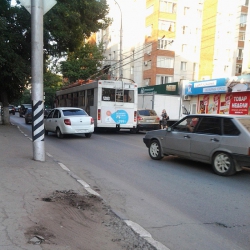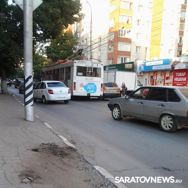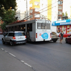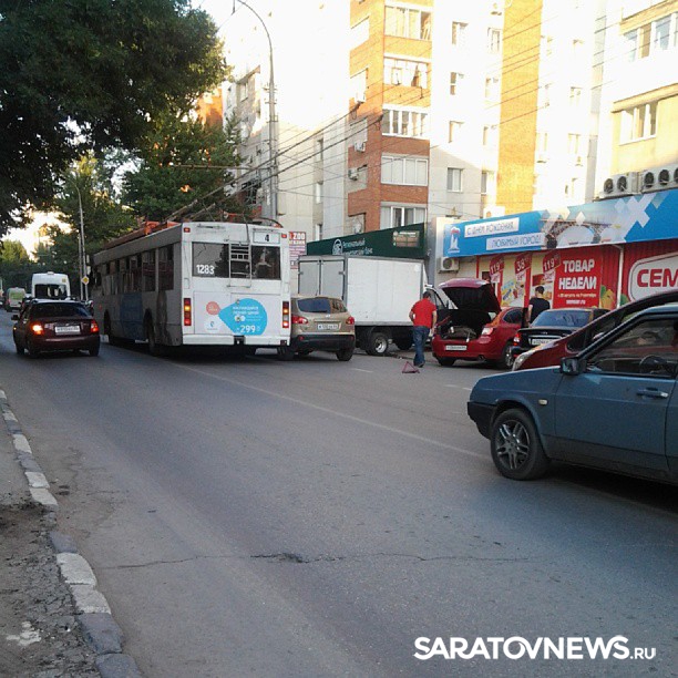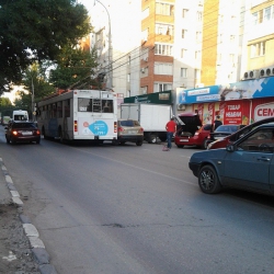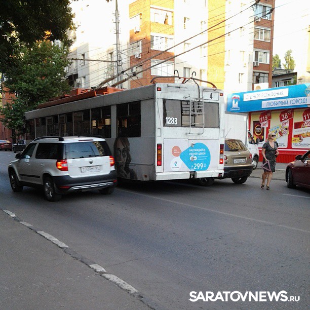 В эти минуты движение по улице Чернышевского в Волжском районе Саратова затруднено из-за столкновения троллейбуса №4 и кроссовера "Ниссан" на участке между Григорьева и Октябрьской. Иномарка притерлась боком к борту троллейбуса. Вместе они перекрыли полосу движения из Заводского района к Музейной площади - полосу, по которой следуют как частные автомобили, так и общественный транспорт. Место ДТП другим участникам движения приходится объезжать по встречной полосе, выделенной для общественного транспорта.