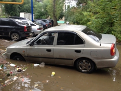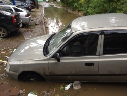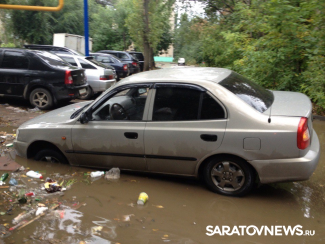 На улице Осипова в Саратове машина провалилась в яму с водой и мусором. Фотографии с места инцидента появились сегодня в социальной сети "ВКонтакте". Как сообщают пользователи, женщина за рулем "Хендай" не заметила лужу, в результате машина ушла под воду.