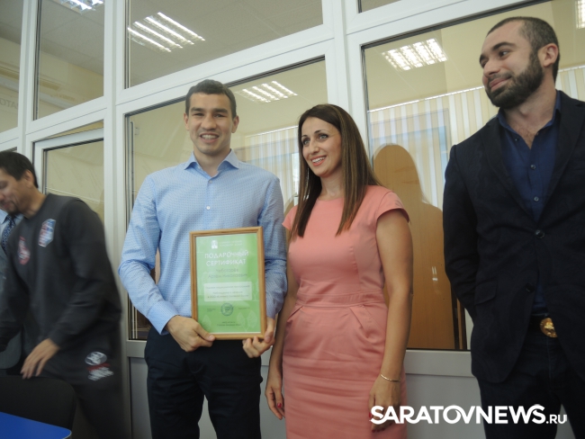 Вчера, 13 сентября, после победного боя за звание чемпиона мира в боксе по версии АРВ, который прошел в саратовском "Кристалле", Артем Чеботарев получил особый подарок - сертификат на квартиру. Ценную награду ему вручил лично губернатор Саратовской области Валерий Радаев.