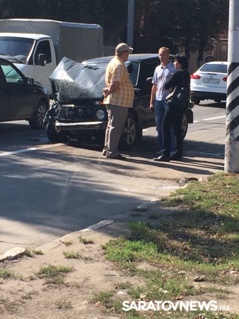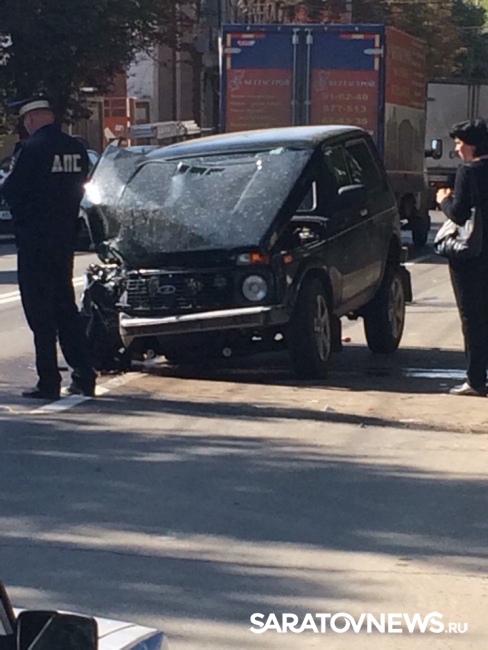 На улице Чернышевского сегодня днем произошло дорожно-транспортное происшествие, в результате которого пострадало трое молодых людей. Фотографии с места происшествия были опубликованы в группе "Саратов Онлайн" в соцсети "ВКонтакте", как пишут пользователи, ставшие свидетелями аварии, машина марки "Нива" сначала попала задним колесом в дорожную яму, а в результате водитель не справился с управлением и въехал в столб.