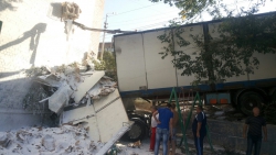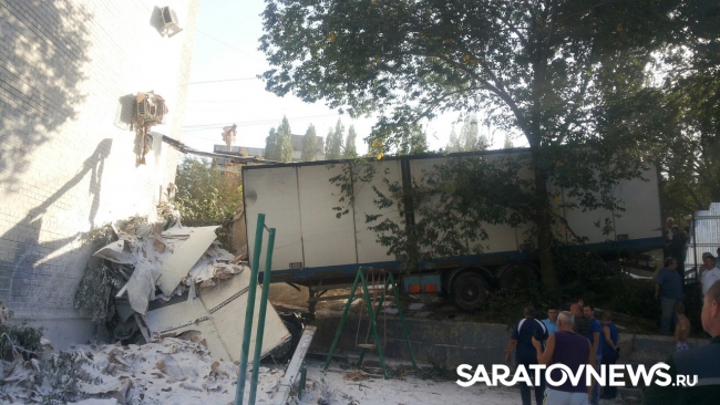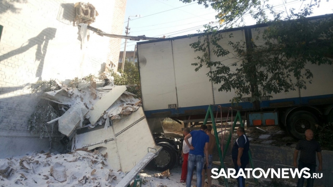 В Саратове грузовая фура протаранила жилой многоэтажный дом №180 "б" по улице Новоузенской. Авария произошла около часа назад, фотографии с места ЧП появились в социальных сетях.
