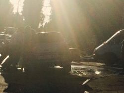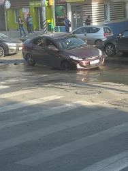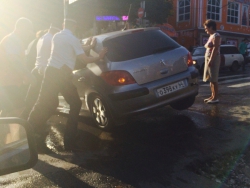 Через некоторое время после освобождения иномарки, в ту же самую яму передним колесом попал еще и "Хендай".