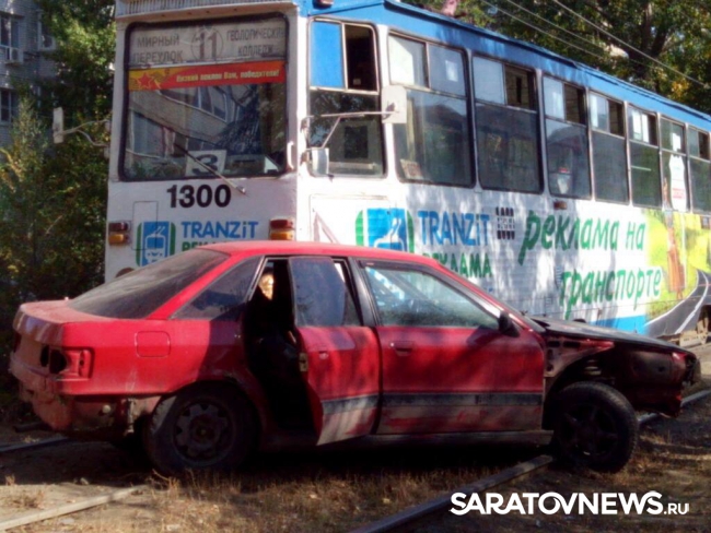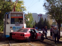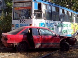 Как пишет Россенко, трамвай врезался в иномарку, а затем протащил ее по рельсам.