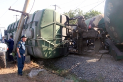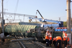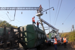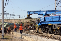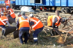 Напомним, сход рельсов 19 вагонов грузового поезда, следовавшего от станции Буркино до Багаевки произошел в минувшее воскресенье, около 10:30 на железнодорожном переезде между Александровкой и Багаевкой. В результате было сбито 3 опоры ЛЭП и повреждено 10 метров дорожного полотна. Из-за происшествия было задержано движение некоторых пассажирских поездов.
