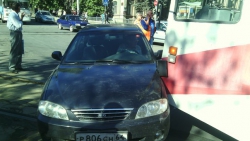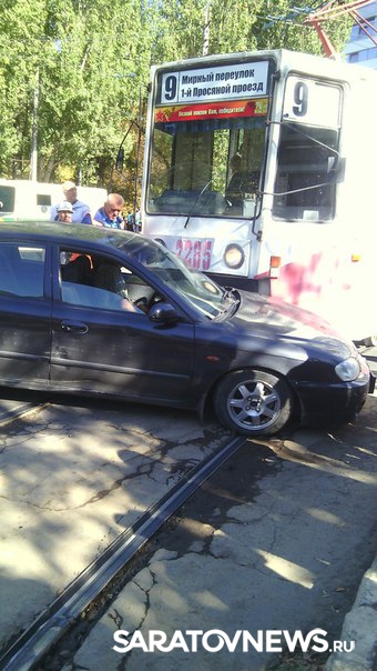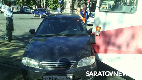 Сегодня около 12:15 в центре Саратова произошло дорожно-транспортное происшествие с участием трамвая, следующего по маршруту №9 и автомобиля "Киа". Удар пришелся на водительскую дверь, а результате пенсионер, находившийся за рулем оказался заблокированным в автомобиле.