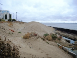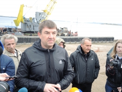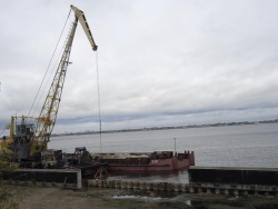 "Работы начались с сентября. На данный момент работы ведутся на двух участках – улице Вольской и улице Дегтярной. Отсыпается щебень, работает плавкран. Второй плавкран с 16 тоннами у нас находится на погрузке щебня. На Дегтярной ведется установка армакаркасов. Водолазы готовятся к спуску, чтобы сделать съемку и видеосъемку, чтобы засыпать щебнем места, являющиеся проблемными. Все идет по плану, график выполняется. Закончить этот участок мы планируем к декабрю. Общая протяженность участка, над которым мы будем работать – 1310 метров. За предыдущие этапы ответственность я не могу нести, мы встали уже на третий этап работ, прописанный в контракте", - рассказал Сергей Бахарев.