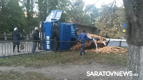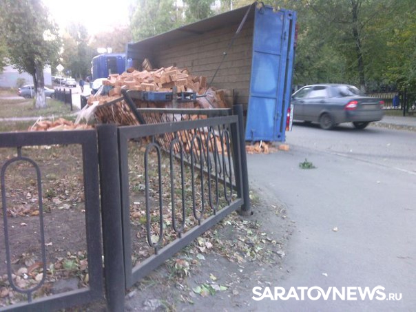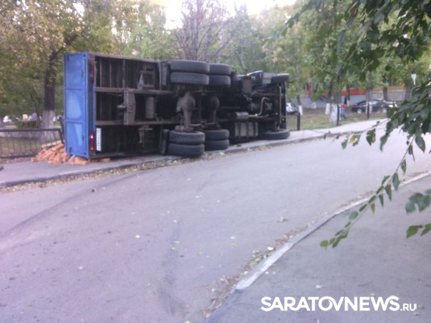 Около часа назад в Ленинском районе Саратова, на проспекте 50 лет Октября, в районе 1-ой Дачной, перевернулся грузовик с кирпичом. Фото с места дорожно-транспортного происшествия появились в группе "Типичный Саратов" в социальной сети "ВКонтакте".