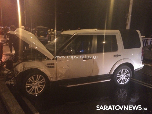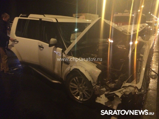 24-летний парень на "Исузи Джими" из Энгельса выехал на полосу встречного движения и по касательной задел "Лифан", за рулем которого сидел 32-летний мужчина. Китайскую иномарку от удара выбросило на чужую полосу, где она столкнулась с "Ленд Ровер Дискавери" и "Рено Флюенс". Водитель "Лифана" получил тяжелую травму головы, перелом ребер справа, и в состоянии комы попал в 1-ую ГКБ. По различным данным, еще два человека в этой аварии получили более легкие повреждения.