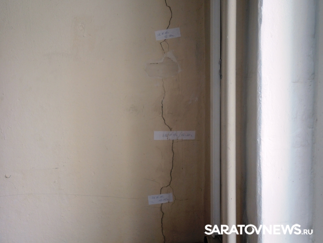 Заместитель директора по учебной работе Саратовского колледжа книжного бизнеса и информационных технологий Ирина Левченко показала корреспонденту Saratovnews трещины, которые были обнаружены на стенах здания и прокомментировала инцидент. Напомним, в минувший понедельник, 26 октября, группа студентов вышла на акцию на крыльцо здания с просьбой перевести их из помощения, которое они считают небезопасным в другое. Тогда выяснилось, что причиной случившегося стали трещины, которые появились на стенах сразу нескольких кабинетов.