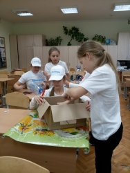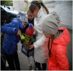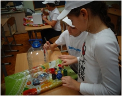 Ребята должны были представить на суд жюри свой социальный проект. Команда гимназии №4 г.Саратова предложила проект под названием "Покорми птиц зимой". Целью проекта было создание благоприятных условий для зимовки птиц в городе, а также закрепление представлений дошкольников о зимующих птицах, их образе жизни. Проект состоял из двух частей. В первой части школьники собрали необходимый материал для создания кормушек, ребята старались сделать их максимально комфортными и приятными для птиц. После изготовления кормушек, трудовой отряд приобрел специальный корм для птиц и засыпал его в кормушки, которые они развесили на деревья по улице Вознесенской Саратова.