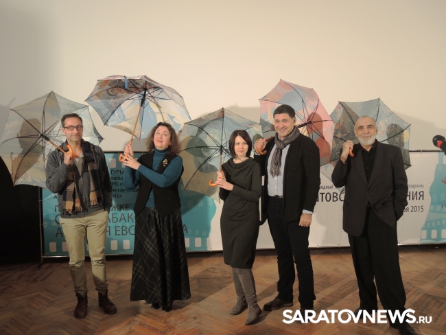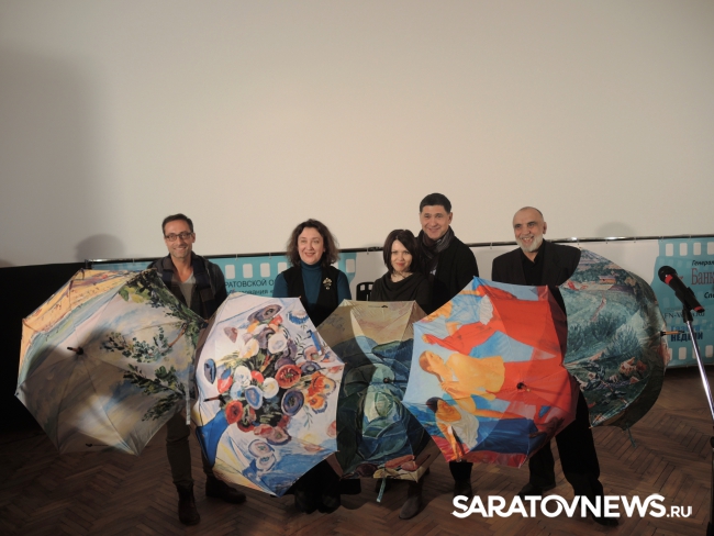 Все члены жюри получили традиционные подарки - зонты с принтами картин саратовских художников. Церемония закончилась перерезанием красной ленты. Это поручили председателю жюри Сергею Пускепалису, который сделал это совместно с представительницей министерства культуры Саратовской области.