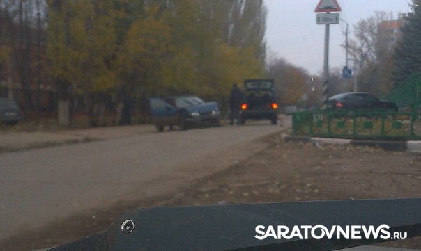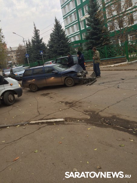 Сегодня в Саратове из-за дорожной аварии образовался серьезный затор на улице Артиллерийская. Столкнулись два легковых авто: "Нива" и легковушка-хэтчбэк. У Нивы - обширная вмятина на левом борту, у хэтчбэка деформирован капот.