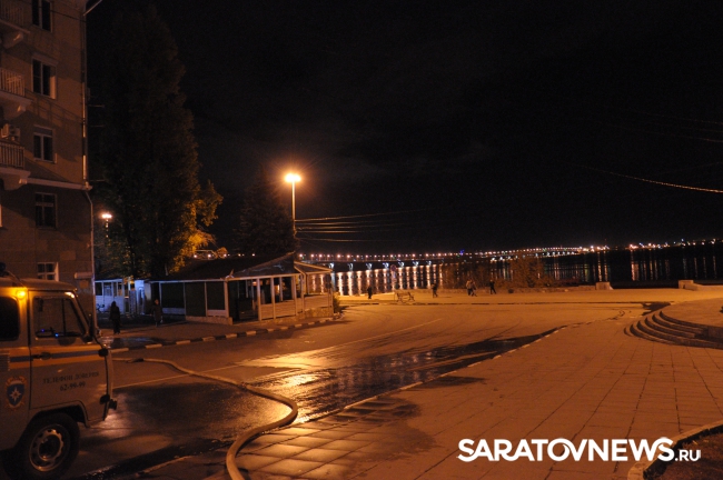 Корреспондент Saratovnews побывал на месте происшествия - у ресторана "Дольше Вита" на Набережной Космонавтов, 6 в Саратове, где сегодня произошел пожар. Расчеты четырех автоцистерн заканчивали проливать место возгорания в подвальном помещении - в кухне ресторана.