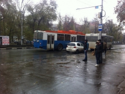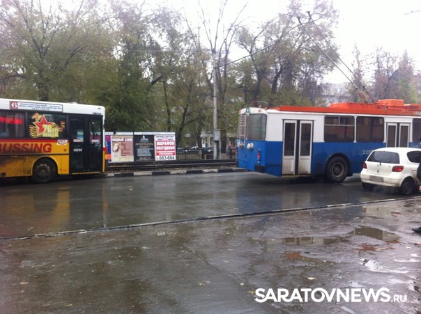 Сегодня, 9 ноября, днем улица Астраханская в Саратове оказалась парализована из-за столкновения троллейбуса и автобуса.