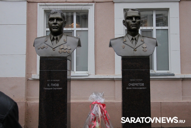 Сегодня, в День сотрудника органов внутренних дел РФ, в Саратове состоялась церемония открытия бюстов Геннадию Кутнову и Денису Очеретову - героям, служившим в МВД. Бюсты установлены в Аллее Мужества, открытой в ГУ МВД России по Саратовской области несколько лет назад, сообщает пресс-служба главка.