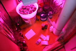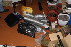 При обыске дома у 31-летнего главаря преступной группы, уроженца Казахстана, нашли марихуану и 11 растений конопли, которые он выращивал в квартире. Кроме того, наркополицейские обнаружили 38 предметов, похожих на гранаты, мины, шашки, а также магазин с девятью патронами.