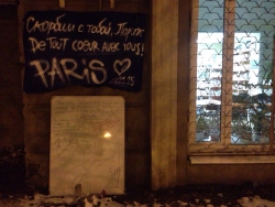 Сегодня на фасаде здания центра "Альянс Франсез Саратов" появился плакат "Скорбим вместе с тобой, Париж". К этому месту горожане приносят цветы и свечи.