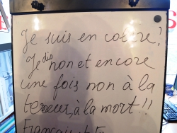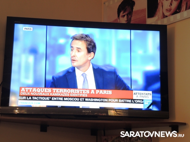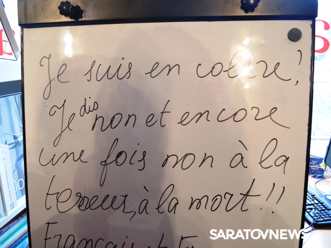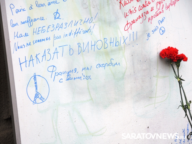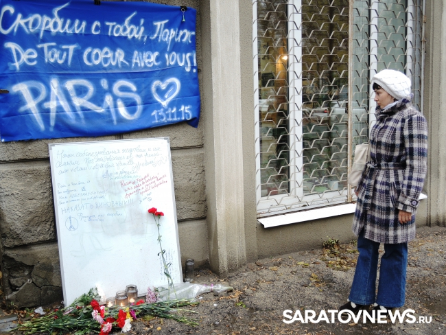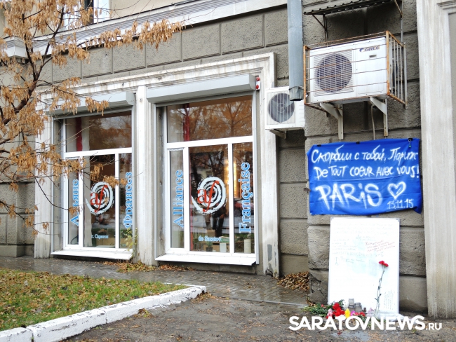Тем временем, возле здания французского альянса в Саратове продолжает висеть баннер с надписью "Скорбим с тобой, Париж", который появился там после серии терактов. Возле баннера установлена доска, на которой прохожие выражают соболезнования. Рядом – лампады со свечами и цветы, которые приносят горожане.