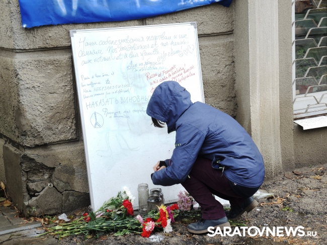 Соболезнования выразили представители СГУ и пресс-службы администрации Саратова, кроме того, один из саратовцев прочитал стихотворение на французском языке.