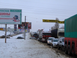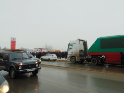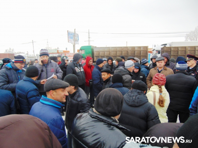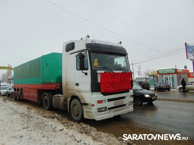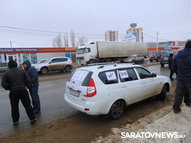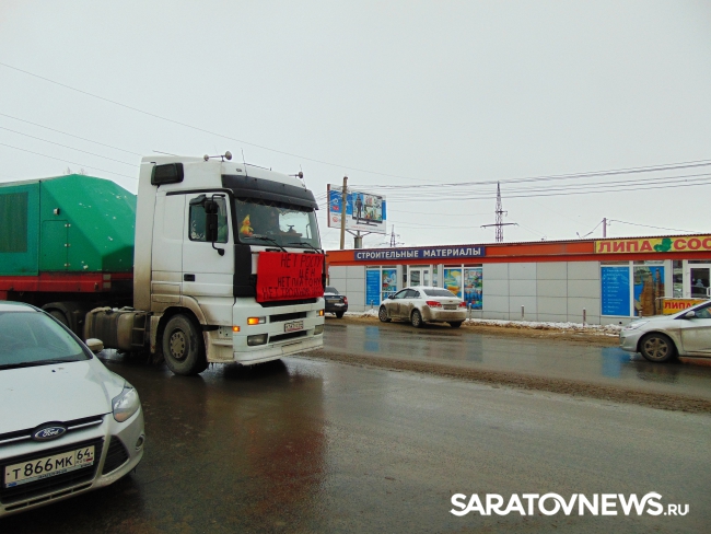 Напомним, акция протеста саратовских дальнобойщиков состоялась сегодня в полдень на Вольском тракте и собрала порядка 70 человек. Протестующие собирали подписи под письмом президенту с просьбой отменить новый налог, а затем проехали автопробегом, который насчитывает порядка 20 машин, в основном легковушек до кольца НИИ. Аналогичная акция прошла сегодня в 9:00 в Энгельсе.