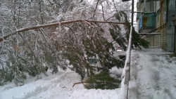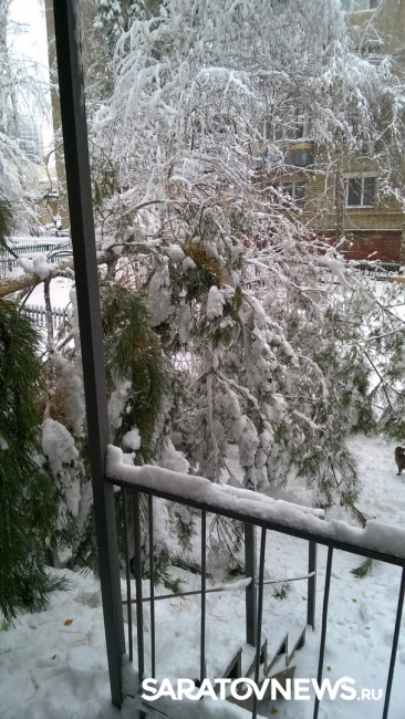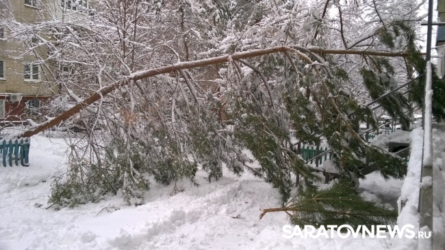 Во Фрунзенском районе Саратова под тяжестью снега перед подъездом во дворе жилого дома №166/168 рухнула сосна. Фотографии с места падения хвойного дерева "ВКонтакте" выложила Ирина Иванова с подписью "Елку заказывали?".