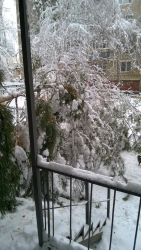 Дерево высотой около 10 метров, очевидно, под тяжестью снега, согнулось и наклонилось на перила подъезда №3, преградив въезд во двор. Дерево при этом не сломалось, однако лишилось нескольких пушистых веток. Некоторые комментаторы поста отметили, что отломленная ветка вполне сгодилась бы в качестве главного атрибута Нового года.