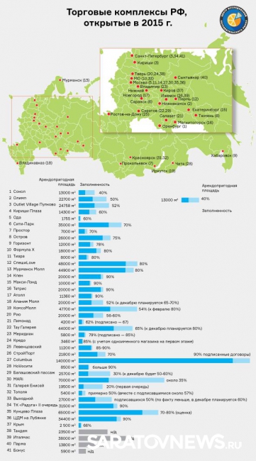 Два торговых центра, расположенных в Саратове и Балашове, стали участниками исследования от Retailer.ru, призванного выяснить заполненность открытых в 2015 году российских ТЦ. В нашем регионе эксперты проверили, какой процент площадей сдали в аренду в ТЦ "Тау-Галерея" и "Балашовский пассаж".
