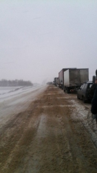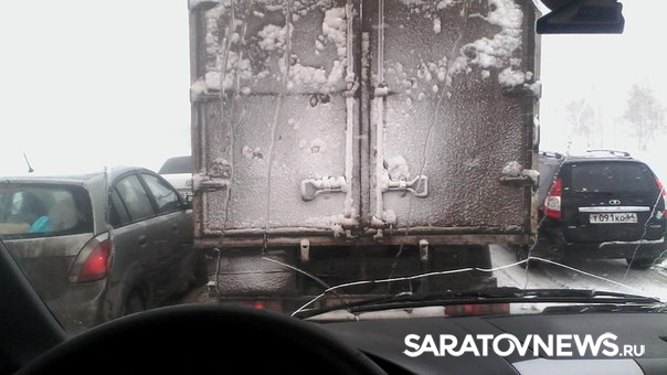 На трассе Саратов - Пенза в близ поворота на село Ягодная Поляна Татищевского района дорогу перегородила фура. Длинномер развернуло перпендикулярно обеим полосам движения, в районе происшествия - затор. Об этом в группе "Местороположение ДПС" Вконтакте сообщил пользователь Илья Агаев.