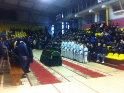 В Саратове проходит церемония прощания с погибшим президентом областной федерации каратэ Азаматом Нормановым, который был расстрелен прямо во время тренировки в спортивной школе Олимп-99 30 ноября.