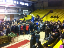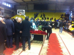 На прощание в ФОК "Звездный", которое началось в 10:00 собралось порядка 200 человек. Кроме родственников и близких, попрощаться с тренером пришли и воспитанники-каратисты. Молодые люди пришли в кимоно и провели минуту молчания, поклонившись гробу.