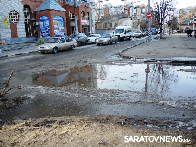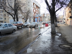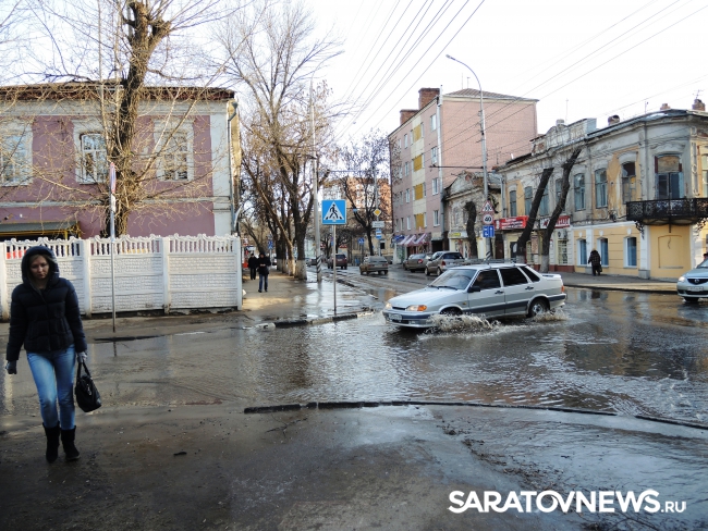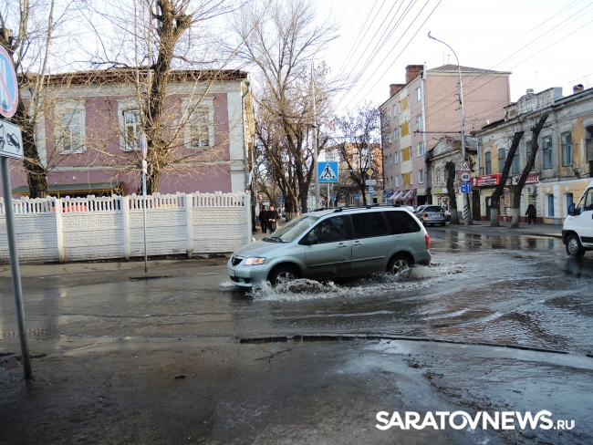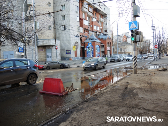 В Саратове из-за порыва трубы на улице Чернышевского случился потоп. Потоки воды глубиной около десяти сантиметров, которые местами превратились в снежную кашу, разлились по проезжей части от улицы Первомайской до Обуховского переулка, создавая проблему как для пешеходов, которым приходится пробираться по лужам, так и для машин, создавая аварийные ситуации на дорогах. Полоса, выделенная для общественного транспорта - заблокирована песком и установленными ограждениями.