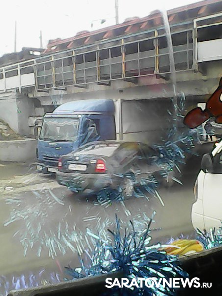 Еще один грузовик застрял под железнодорожным путепроводом на улице Вокзальная в Саратове - фото с места событий очевидцы разместили в группе ВКонтакте "Местоположение ДПС Саратова и Энгельса".