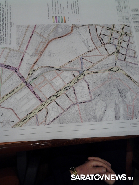 Сегодня на площадке Саратовской областной думы представитель Саратовгражданпроекта Виталий Лесовой представил проект новой транспортной развязки на Стрелке в Саратове. Сметы проект не предполагает. Как подчеркнули представители института, основная задача проекта - определить границы территории общего пользования, в которых будет размещена развязка, установить красные линии. Разработаны более дешевый и более дорогой вариант, оба предполагают размежевать большой участок и не исключают возможности поэтапного строительства.