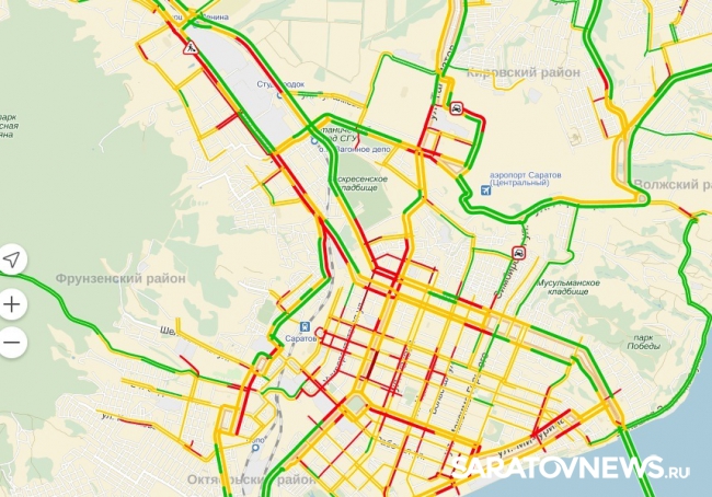 Тем временем затруднено движение и в центре Саратова. Пробки растянулись по улицам Хользунова, Большой Казачьей, Рахова, Советской, Астраханской.