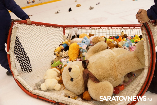 Пока соперники обменивались рукопожатиями, на лед с трибун полетели плюшевые игрушки. Болельщики поддержали благотворительную акцию, которая была организована клубом, в результате игрушками наполнили двое хоккейных ворот. Планируется, что игрушки станут подарками к Новому году для детей из саратовских интернатов.