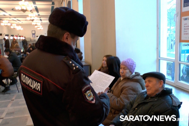 Перед новогодними праздниками полиция Саратова проводит масштабную профилактическую акцию "Стоп, мошенник!". Полицейские вручают саратовцам памятки с советами о том, как не стать жертвой мошенников и уберечь от них своих близких.
